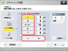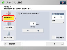 原稿を読み込んだときにできる周囲の影や枠線などを消して読み込みます。枠消しには、[原稿枠消し]、[ブック枠消し]、[パンチ穴消し]の3種類があります。