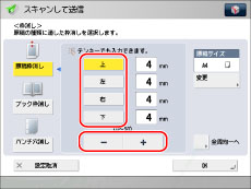 原稿の周囲を均一に指定する画面に戻すには、[全周均一へ]を押します。