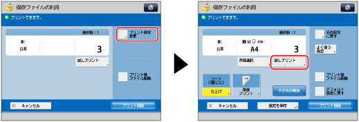 変更後の内容を再度確認するには、[試しプリント]を押してこの操作を繰り返します。