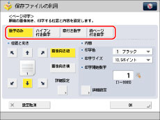 [ページ印字]と[表紙]、[挿入紙]、[仕切紙]を組み合わせて設定した場合は、各挿入紙には印字は行われません。