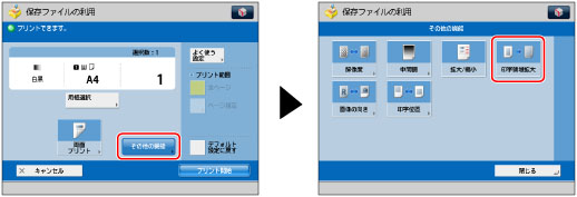 本機能は、アドバンスドボックス、ネットワーク、メモリーメディアに保存したファイルをプリントするときのみ使用できます。