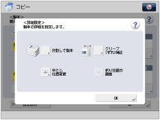 中とじ、分割して製本は、中綴じフィニッシャー・P1を装着している場合のみ設定できます。