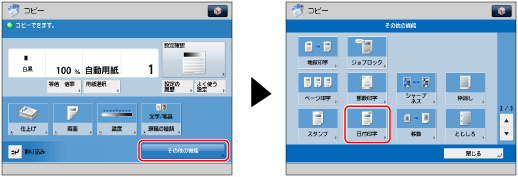 [その他の機能]→[日付印字]を押す