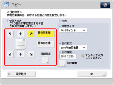 日付印字位置の調整をすることができます。(→ページ印字/スタンプの文字列を登録/編集/削除する)
