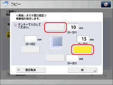 原稿全体を (テンキー)で入力した位置に移動してコピーします。オモテ面、ウラ面の移動先を別べつに設定することもできます。