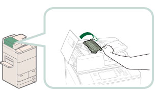 原稿を取り除きにくい場合は、フィーダーを閉じて、フィーダーカバー、中カバーを開いたあと、手順4を行ってください。
