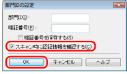 [スキャン時に認証情報を確認する]にチェックマークを付ける→[OK]をクリック