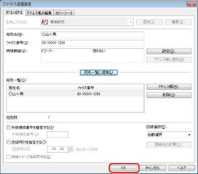 お使いのOS、ファクスドライバーのバージョンによって画面が異なることがあります。