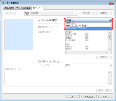 [カバーシートの添付]から添付方法を選択
