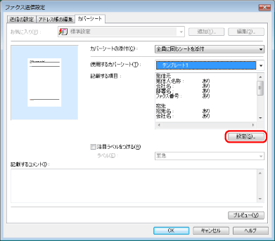 カバーシートに記載する項目を設定する場合は、[設定]をクリック