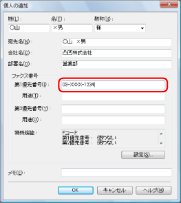 すでに登録された個人のアドレスも編集できます。詳しくは、ファクスドライバー画面の右下の[ヘルプ]をクリックして、ヘルプを参照してください。