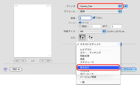 お使いのOS、ファクスドライバーのバージョンによって画面が異なることがあります。