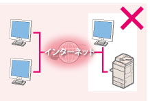 プリンター、複合機にグローバルIPアドレスが設定されていても、ファイアウォール等で外部からのアクセスを防御する環境を構築すれば、不正アクセスのリスクは軽減されます。プリンター、複合機にグローバルIPアドレスを設定して運用したいときは、ネットワーク管理者にご相談ください。