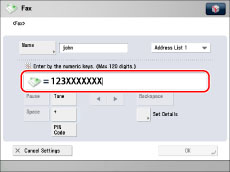 The first character that you enter for the name is used for sorting the destination list when you press keys, such as [ABC], [DEF], and [GHI], on the Address Book screen. If [Search by Name] is pressed on the Address Book screen, a screen for narrowing the search in the Address Book appears.