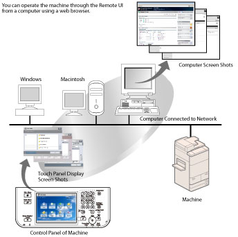 The Remote UI enables you to pause and resume jobs, perform operations on jobs in the Memory RX Inbox or Confidential Fax Inboxes, and specify various settings. It enables you to set and operate the machine from a computer, instead of using the control panel of the machine.