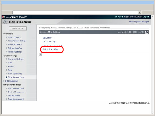 In order to specify settings for the Advanced Space, it is necessary to log in as an administrator.