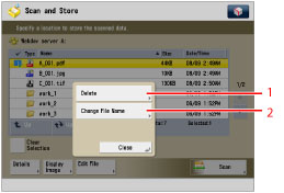 For instructions on arranging folders, checking detailed information for the file, and editing/deleting files, see "Access Stored Files."