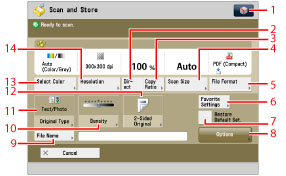 Press to cancel all settings. (The machine restores the default settings for Scan and Store.)
