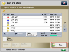 You can scan and store up to 999 pages at one time. If two-sided originals are scanned using the feeder, you can store up to 1,000 pages. Once the maximum number of originals you can scan is reached, a message asking whether to store appears.