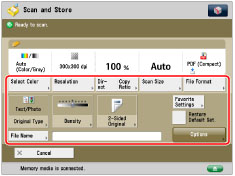 It is necessary to set <Use Scan Function> in [Use Scan/Print Function] to 'On' to scan originals into memory media. (See "Memory Media Settings.")
