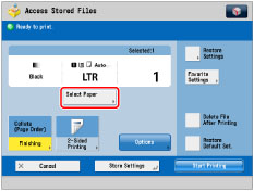 Icons indicating the type of paper loaded in each paper drawer can be displayed on paper selection screens, if you store that information into the machine beforehand. (See "Registering/Editing Custom Paper Types.")