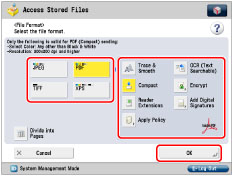If you want to automatically delete the selected document after it is sent, press [Delete File After Sending].