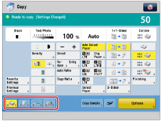 (See "Switching the Copy Basic Features Screen.")You can register up to six desired shortcuts from [Options].