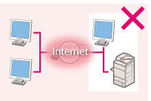 If a global IP address is assigned to a printer/multifunction machine, you can create a network environment to reduce the risk of unauthorized access by installing security software, such as a firewall that prevents access from the external networks. If you want to assign a global IP address to and use a printer/multifunction machine, contact your network administrator.