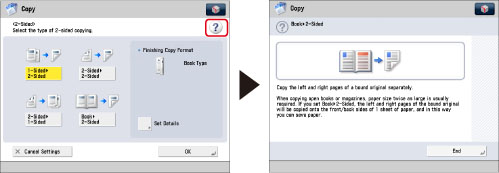 Any time appears on the touch panel display, you can check a detailed explanation of the function and its settings.