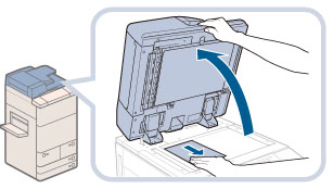 This machine is equipped with an open/close sensor of the feeder (see circled area in the above illustration). When placing originals on the platen glass, lift the feeder approximately 300 mm so that the sensor detaches from the feeder. If the sensor does not detach from the feeder, the size of the originals may not be detected correctly.