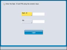 Enter a Department ID/PIN or System Manager ID/System PIN to log in to the Remote UI or a MEAP application (including login applications).