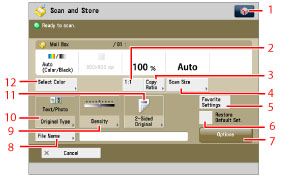Press to cancel all settings. (The machine restores the default settings for Scan and Store.)
