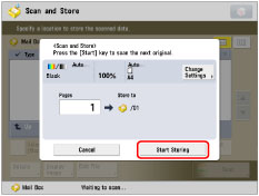 You can scan and store up to 999 pages at one time. If two-sided originals are scanned using the feeder, you can store up to 1,000 pages. Once the maximum number of originals you can scan is reached, a message asking whether to store appears.
