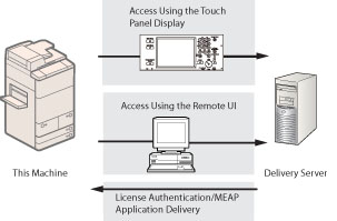 This machine is compliant with MEAP (Multifunctional Embedded Application Platform). MEAP is a software platform that enables the development of custom applications based on Oracle' Java and Java 2 Platform, Micro Edition (J2ME).