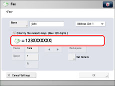 Enter a name for the fax number (recipient) → press [OK].