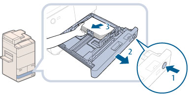 1. Press the open button on the paper drawer for which you want to adjust the paper size. |