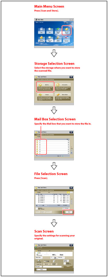 Display this screen when you want to scan an original and store it as a file in the selected folder.