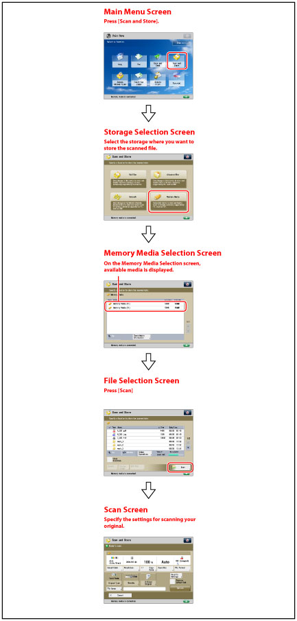 For instructions on arranging folders, checking detailed information for the file, and editing/deleting files, see "Access Stored Files."