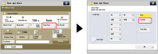 Press [Scan Size] → [Custom].
