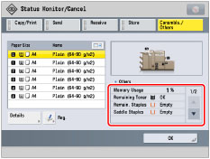 If the Advanced Space is open to public via SMB and [Use SMB] in [Preferences] (Settings/Registrations) is set to 'On', clients connected to the SMB printer will also be displayed and counted as the connected clients. For instructions on setting the Advenced Space to open to public via SMB or WebDAV, see "Advanced Space/Network Settings."
