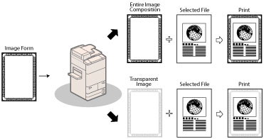 To use the Superimpose Image mode, the image form must be registered in the machine beforehand. (See "Registering Forms for the Superimpose Image Mode.")