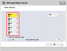 If [Custom] is displayed as the paper size when you load standard sized paper, press [Custom Size] → [Cancel Settings]. The proper paper size will be detected automatically and displayed on the screen.