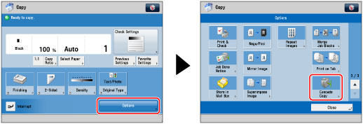 The Cascade Copy mode can be used among the machines of the same model (imageRUNNER ADVANCE 6275/6265/6255). You cannot use this mode with a different series machine.