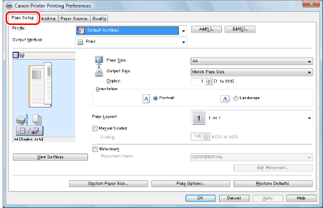 If you cannot select the options for [Page Layout], display the [Device Settings] tab, and then select [Auto] or [Enabled] from [Spooling at Host]. For instructions on how to display the [Device Settings] tab, see "Setting the Printer Options."