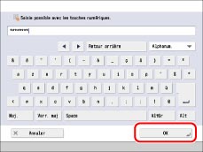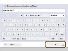 Si l'on utilise le système d'authentification utilisateur Local Device Authentication de SSO-H (notamment la combinaison "Active Directory Authentication + Local Device Authentication"), le nom d'utilisateur et le mot de passe ne peuvent compter que les caractères suivants (en respectant la casse) :