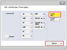 Le format papier spécifié doit être identique à celui du papier chargé dans le plateau multifonctions.