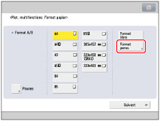 → saisir les valeurs correctes.Pour sélectionner un format de papier mémorisé sous une touche de format ([S1] à [S5]), il convient de mémoriser au préalable le format de papier irrégulier sous la touche de format. Pour plus d'informations sur la mémorisation de formats de papier irréguliers, voir "Mémorisation/modification/suppression des formats de papier personnalisés".
