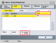 Dérouler la liste → sélectionner [Envoi] → appuyer sur [Imprimer la liste].