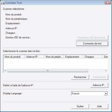 Si un scanner est déjà sélectionné, passer à l'étape 6 de la section "Réglages du scanner réseau".
