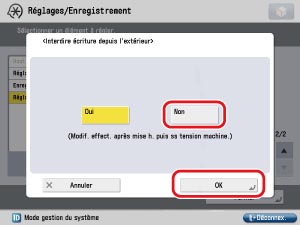 Suivre les procédures ci-dessous pour vérifier si [Interdire écriture depuis l'extérieur] est réglé sur "Non".